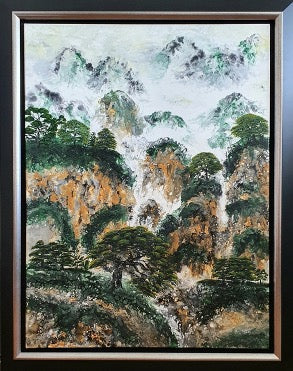 Creating a new approach of landscape painting which adopts the concept of Chinese painting (山水画) and executed with pour acrylic techniques combined with brush painting techniques. This is a large painting which was inspired by 'Little Guiling (小桂林)' located at Bukit Batok East Avenue 5.