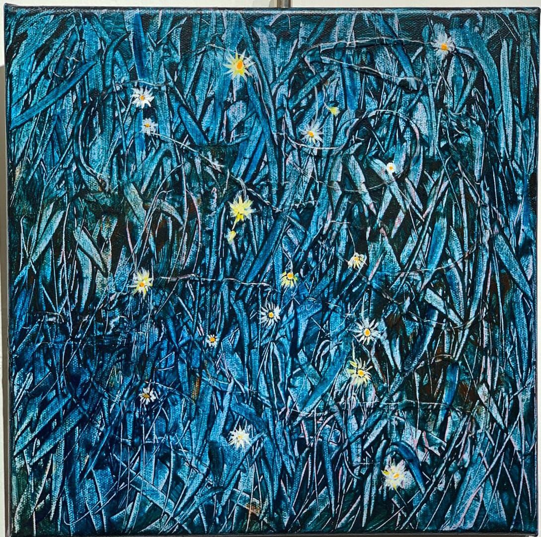 At my 2019 exhibition, Three Rooms, I wanted to make us see the beauty of little around us. I painted the ordinary grass, but in blue.