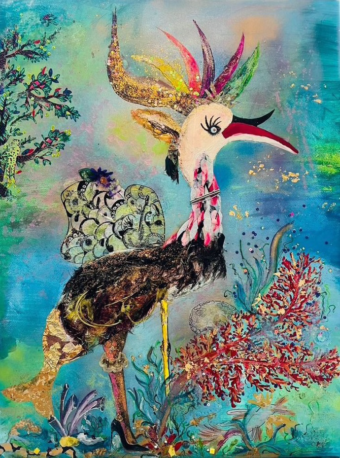 We visited “confluence museum” A truly unique piece of architecture, a centerpiece of the revitalization of an old industrial neighbourhood. The museum itself has an interesting collection of objects underscoring the history of man and his relationship with nature, with many indigenous art included. IT remind me Cabinets of curiosities, also known as ‘wonder rooms’, were small collections of extraordinary objects which, like today’s museums, attempted to categorise and tell stories about the wonders and oddities of the natural world. It frequently uses animals. Idrew my inspiration for this canvas, both from the cabinets of curiosities and at the same time from the countless species of birds at Singapore.