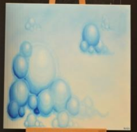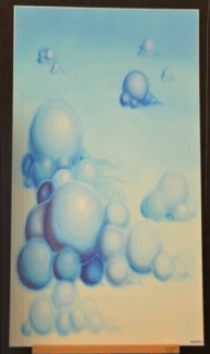 “I’ve chosen to share my hope for better days to come through the illustration of clouds. My intention was to evoke a sense of serenity and longing, as when we see towers of fluffy clouds above us upon a bright blue day we smile, trusting that things will be alright. Most importantly, I hope that my painting brings just that; hope.