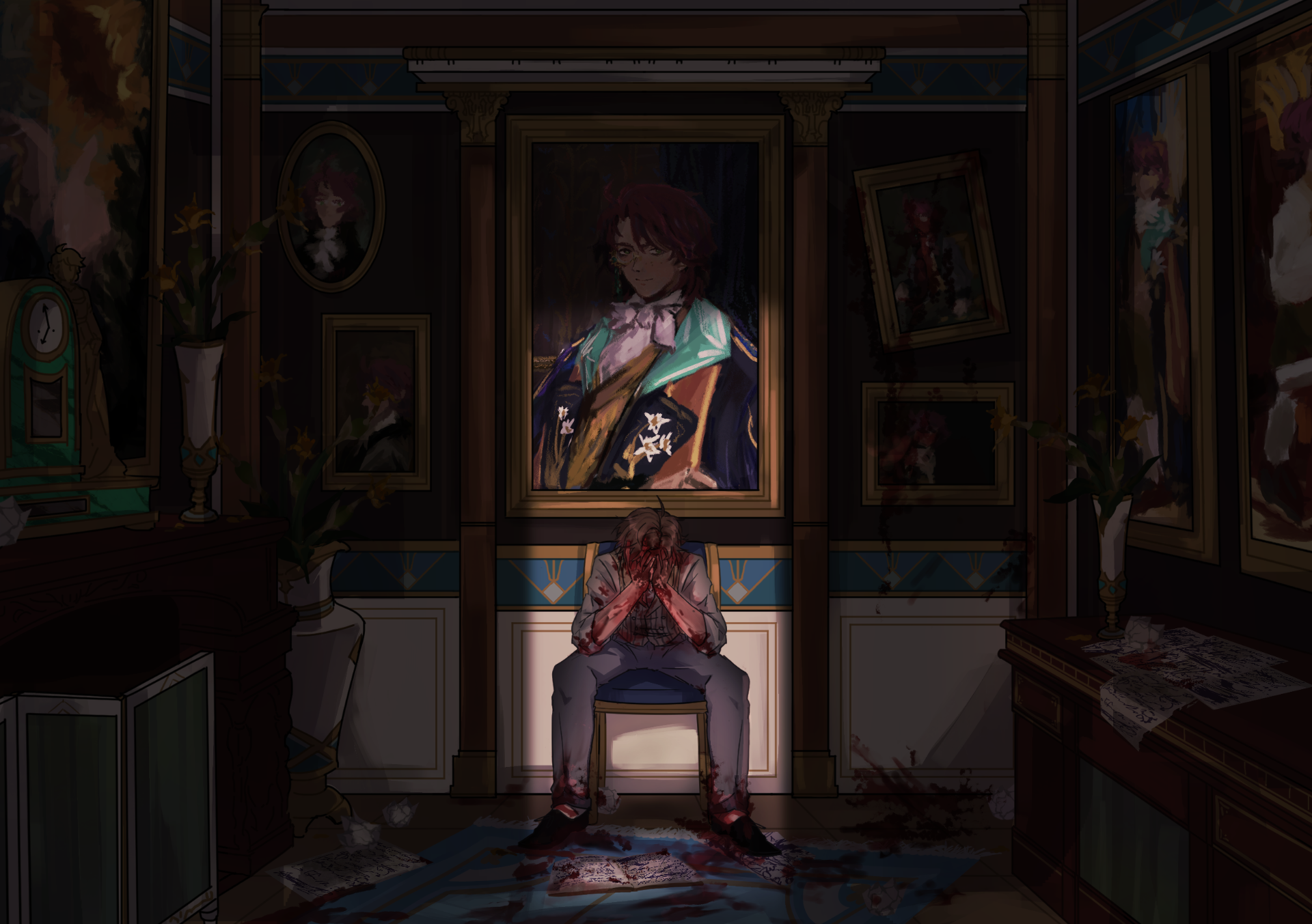 This piece was created for the Revelatio Finalis event on Twitter and centers on Jakob as he grapples with the aftermath of failed experiments in his attempt to resurrect Rene. The artist portrays Jakob working from a memory that is already beginning to fade, forcing him to reconstruct the missing or imperfect parts with an idealized version of who Rene once was. Through this depiction, the artist explores Jakob’s deep internal conflict, questioning whether the person he’s trying to bring back is truly the same as the one he once knew.