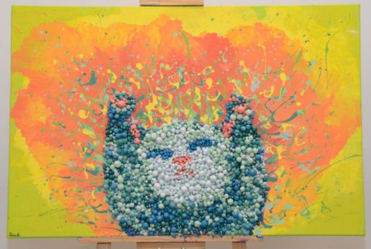 The vibrant explosion of yellow, orange and red in the background symbolises transformation, like a phoenix rising from the ashes. The raised paw gesture is a universal symbol of luck and invitation, reflecting the idea that everyone deserves an opportunity to rebuild and thrive. It highlights the