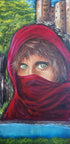 The scenery has both evergreen and ruins. The woman is caught in the ruin but she wants to move to the woods where there is peace. The eyes follows wherever the viewer moves, it represents, "I will follow where there is peace and love"