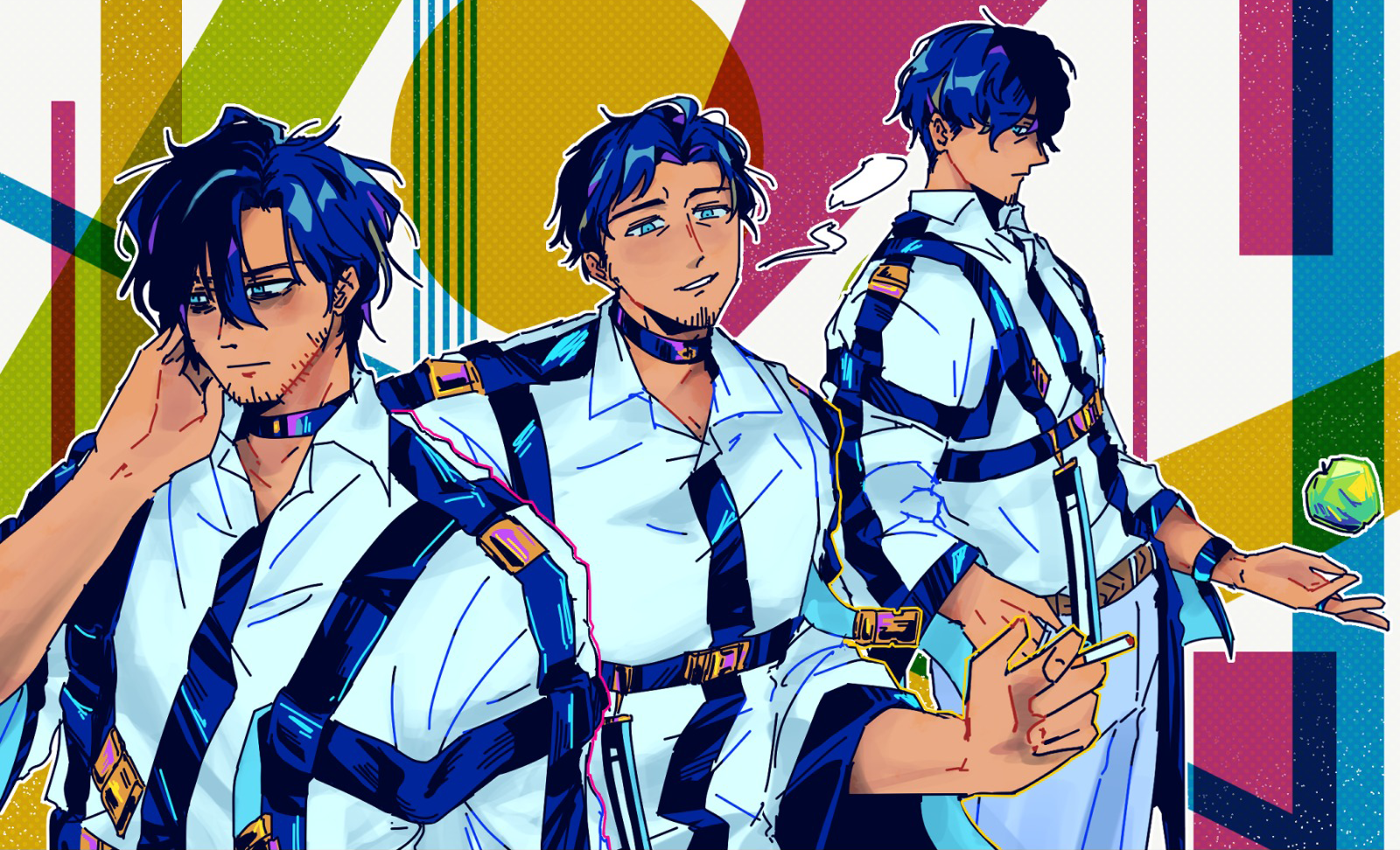 This experimental coloring piece features Mukuhara Kazui and was created for the Trial 3 sprite releases from the interactive music series MILGRAM. The artist finds Kazui’s story particularly compelling and was inspired by the dramatic shifts in how he has been portrayed throughout the series. These evolving depictions sparked curiosity in the artist, leading to reflections on what the final trial might ultimately reveal about his character.