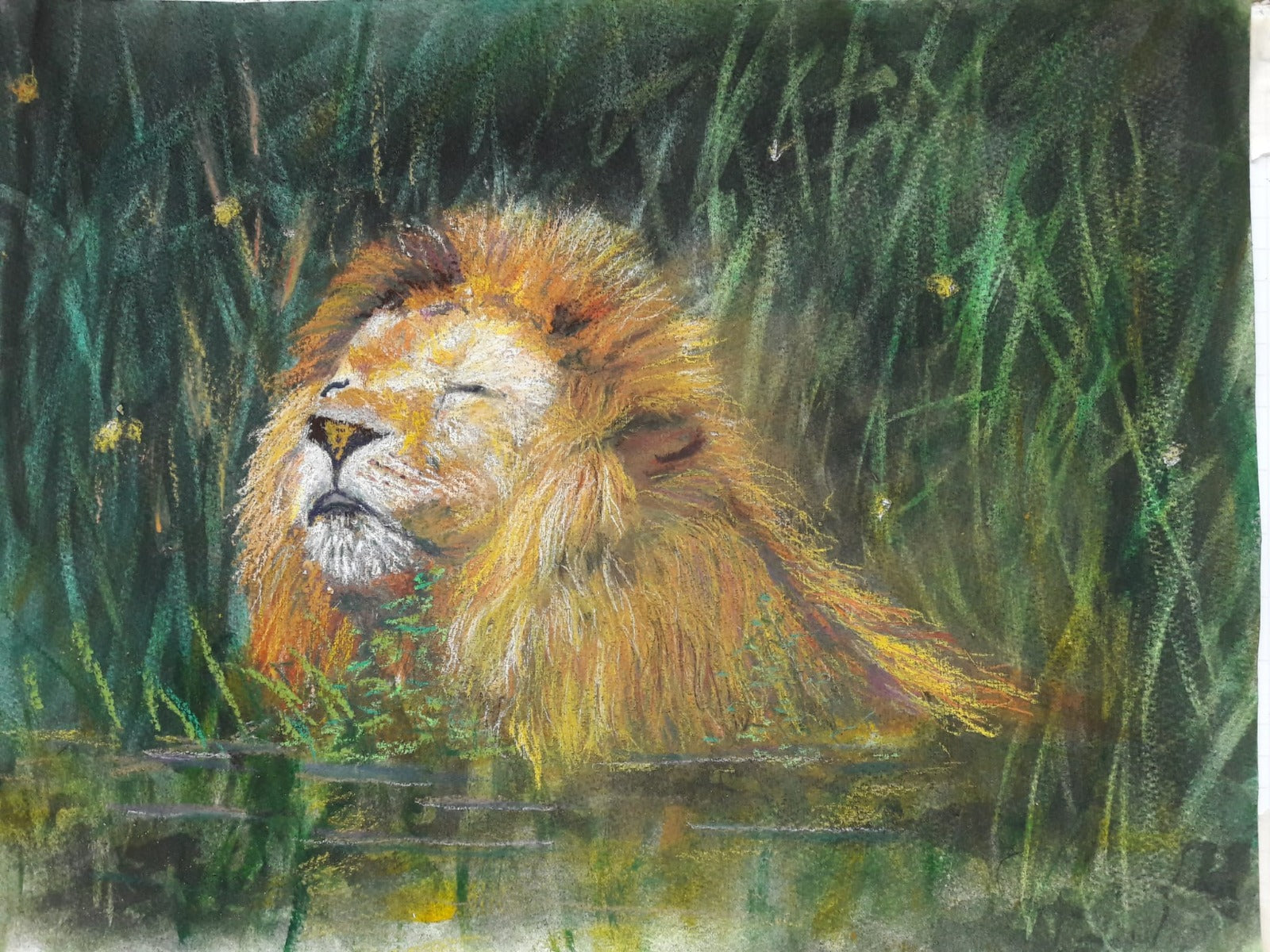 In a hot month in July, I chanced upon this photo of a lion. He seems to be soaking in the