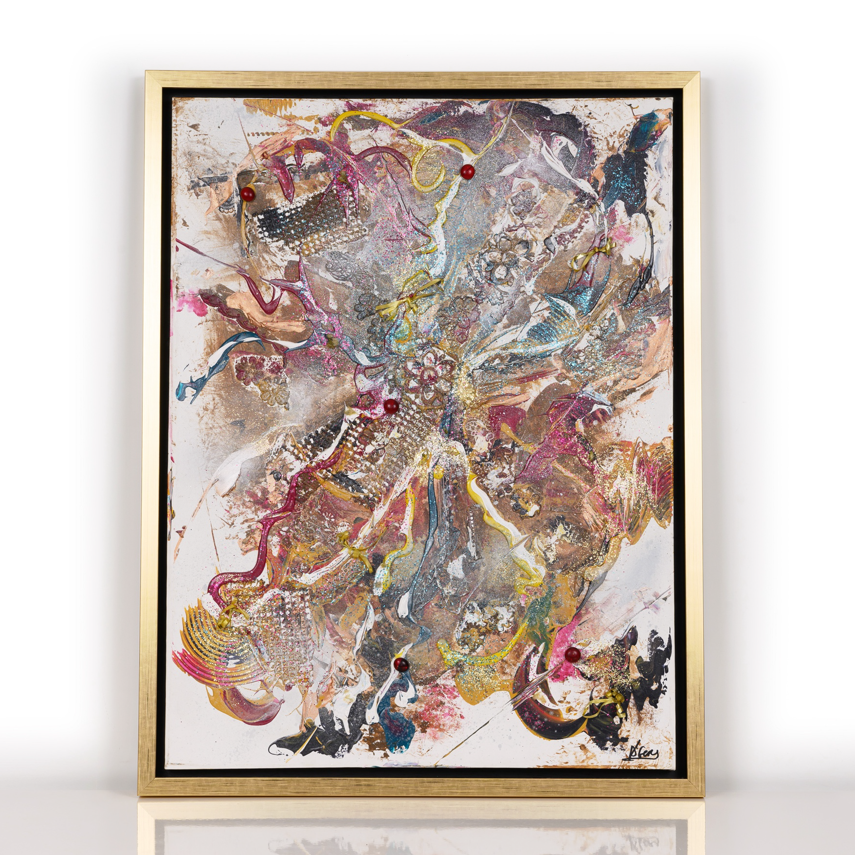 The Artwork was created in France in 2016 When I created it, I knew that we were going to embrace a new life. This artwork is full of positive vibes, love, hope and lights for the future. The story of “Sun of my life” is described as below : Sitting in front of my white canvas, I was working on a series of abstract Artwork, using different materials and mixing paintings techniques and then thinking at an idea to represent the sun. At the same time my daughter came into my lab and she said out loud : ‘Mum , it looks like a Sun !” , this moment was so intense and positive : A new star was born ! The painting went through a series of transformation until perfection , it was my daughter’s inspiration ! I applied different layers of texture and I mixed different styles of painting. I put into light the deep relationship and connection I had with my daughter. The sun of my life represent the symbol of life and the energy I found every day thanks to my daughter.