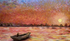 Stopping mid-journey, a boater stands in awe and takes in the magnificent sunrise, its golden rays spilling onto the water and shining its light on wherever it hits.