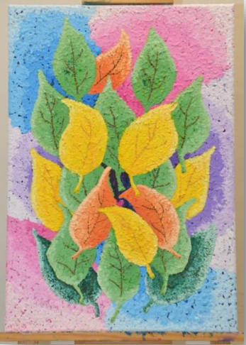 Bright yellow and orange leaves against green symbolise renewal through community support after adversity. The varied background colours evoke diverse emotions and experiences, stressing the uniqueness and interconnection of each journey. "The Power of Chance" captures hope and redemption, showing how compassion and connection allow us to give and receive second chances.