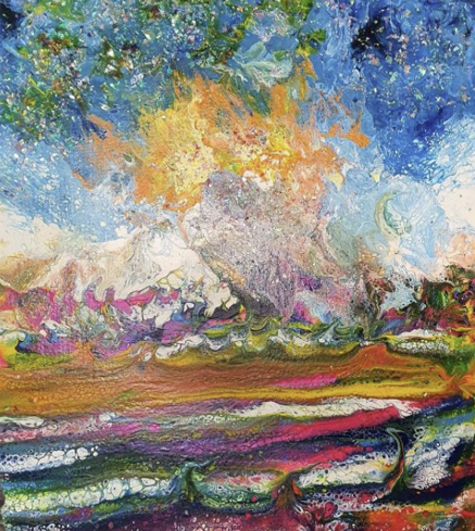 Acrylic Pour with Blue and Pink Glitter Flakes