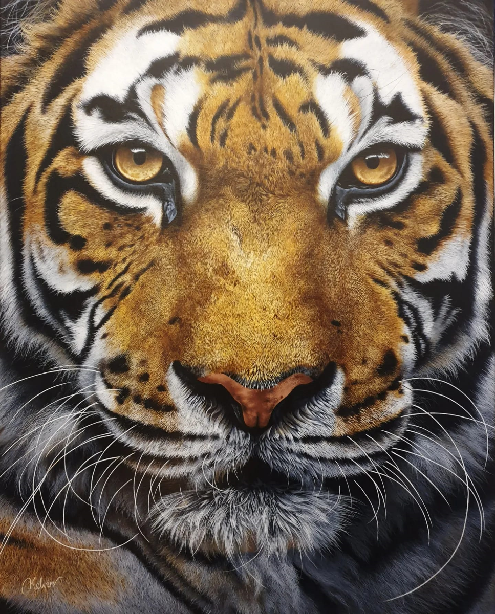 Tigers has always been one of my favorite subjects to paint. The contrast in the colour and different textures of the fur makes the entire process challenging yet enjoyable. I particularly enjoyed capturing the gaze and expression in this portrait. It reminds me of the beauty of these intimidating creatures.