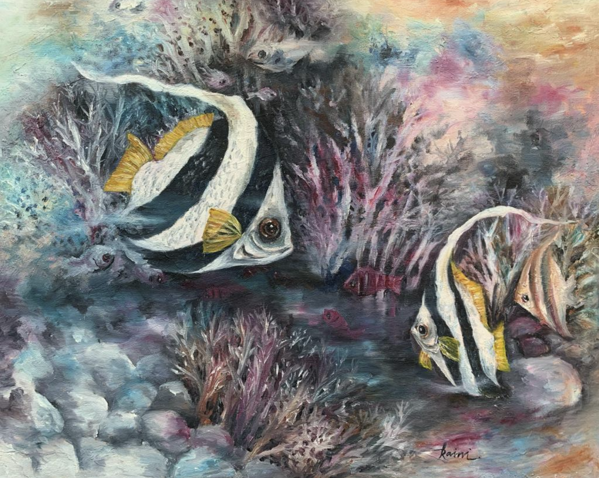Vibrant fishes stand out against a cool-toned backdrop, painting a mystical scene of another world hidden underwater.